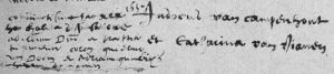De naam van Catharina werd bekend in de akte van de nalatenschap van zoon Michael: "De kinderen zijn gehouden uit te reiken en te betalen aan Catharina van Vianen, wed. van mr Judocus van Campenhout, sijne testateurs moeder, de somme van 300 guldens eens, mitsg[ade]rs ook aan dezelve te laten volgen een stuck wit linden [linnen], lanck 54 ellen, berustende ten huijse van Jacobus Dietiens; item sullen de vers. sijns testateurs drye kinderen gehouden sijn tot solas van sijne ziele, indien hij in eenige benautheijt ende(?) naer mochte sijn, te sullen laten doen twee hondert ziel misschen, ende begeert oock dat mr Philipus van Campenhout, sijn broeder, tot een gedachtenisse sal hebben sijnen degen met het silver gevest en sijnen kolder, [vervolg in de tekst] secluderende ende uijtsluijtende hij testateur alle sijne verdere vrienden ende erffgenamen met de somme van ses guldens eens;"