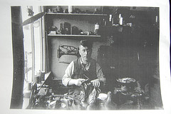 Hendrik (Henk), (circa 1938) in zijn werkplaats aan huis aan de Willemstraat 39 in Leiden. Hij had zijn werkplaats in de voorkamer, straatkant van het woonhuis. Hij was gediplomeerd schoenhersteller, net als later zijn zoon Wout.